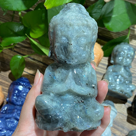 Different Material Crystal Baby Buddha Carvings (Obsidian/Blue Aventurine/Sunstone/Labradorite/Taiji Stone)