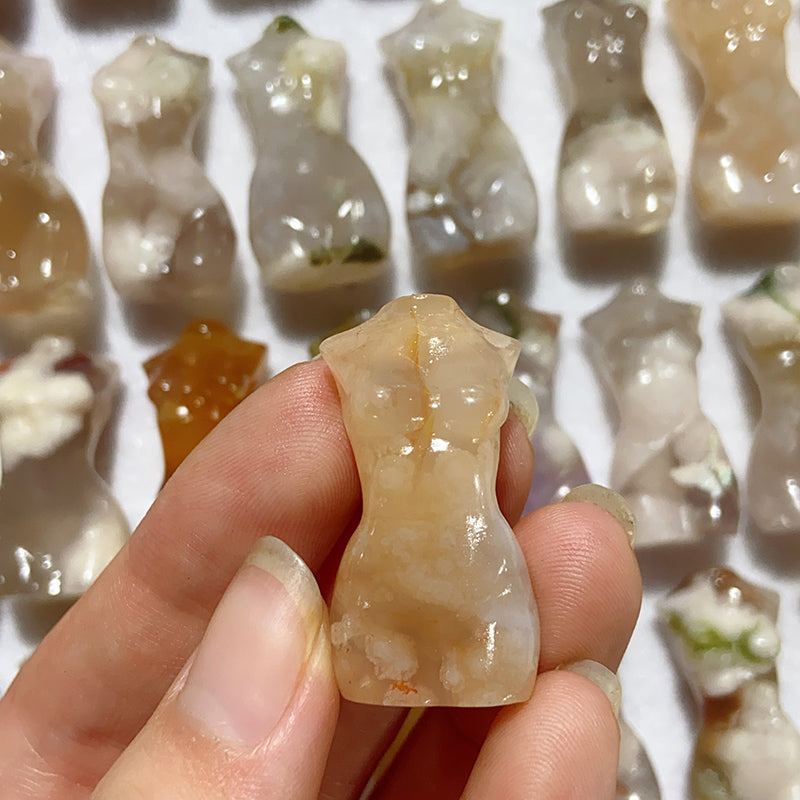 Natural Flower Agate Lady Body Carvings