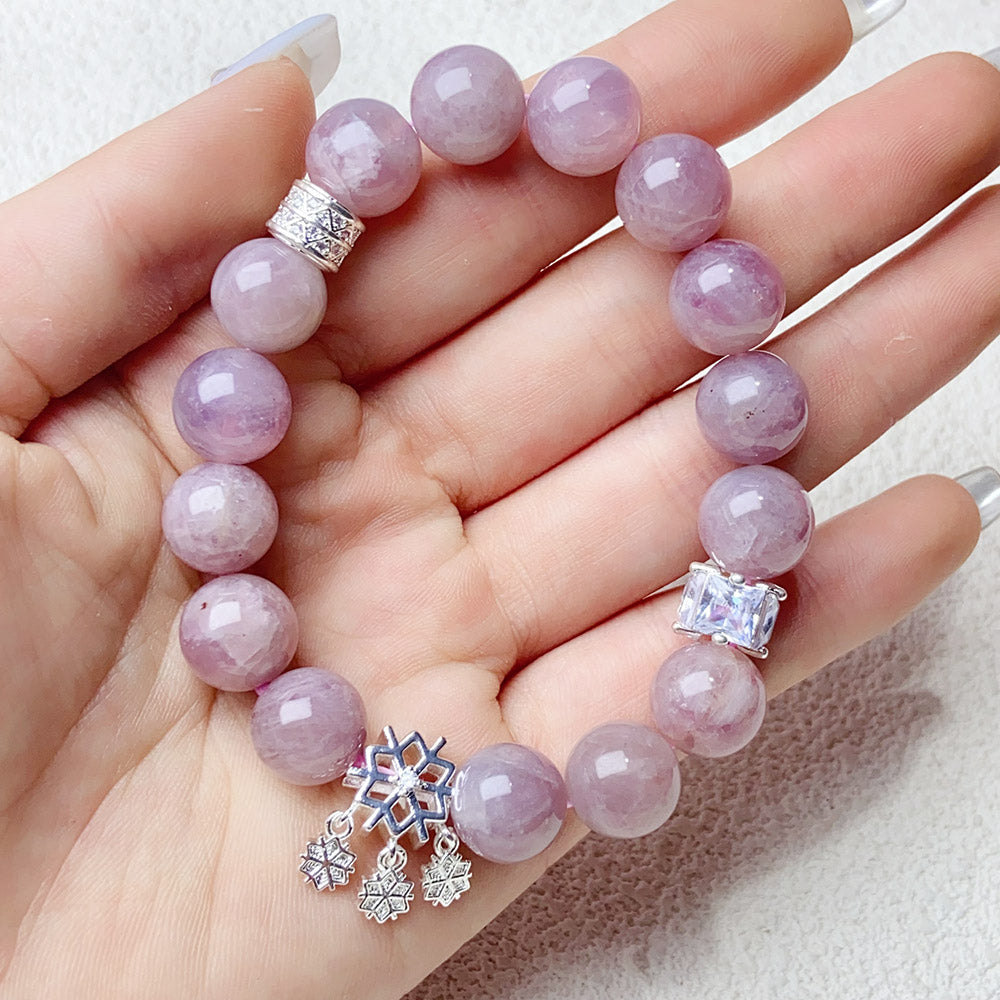 11mm Lavender Rose Quartz Bracelet With Snowflake Pendant Charm Bracelets Jewelry Gift