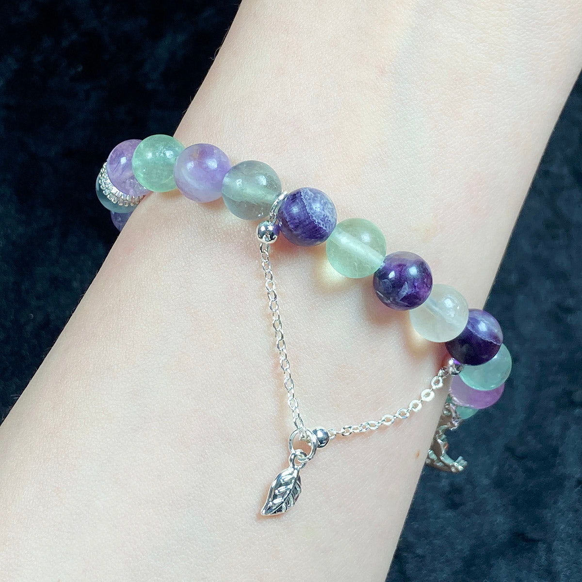 8MM Fluorite Round Beaded Bracelet Reiki Crystal Healing Gemstone Chain Accessory Fashion Jewelry