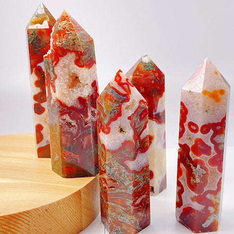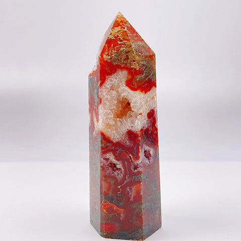 Moss Agate is a form of chalcedony included in the Agate family. It is a semi-precious stone made from silicon dioxide. Moss Agate has green colored minerals throughout which look like moss. It also has brown or black shades in the patterns. Moss Agate has a meaning that is about uplifting and soothing.