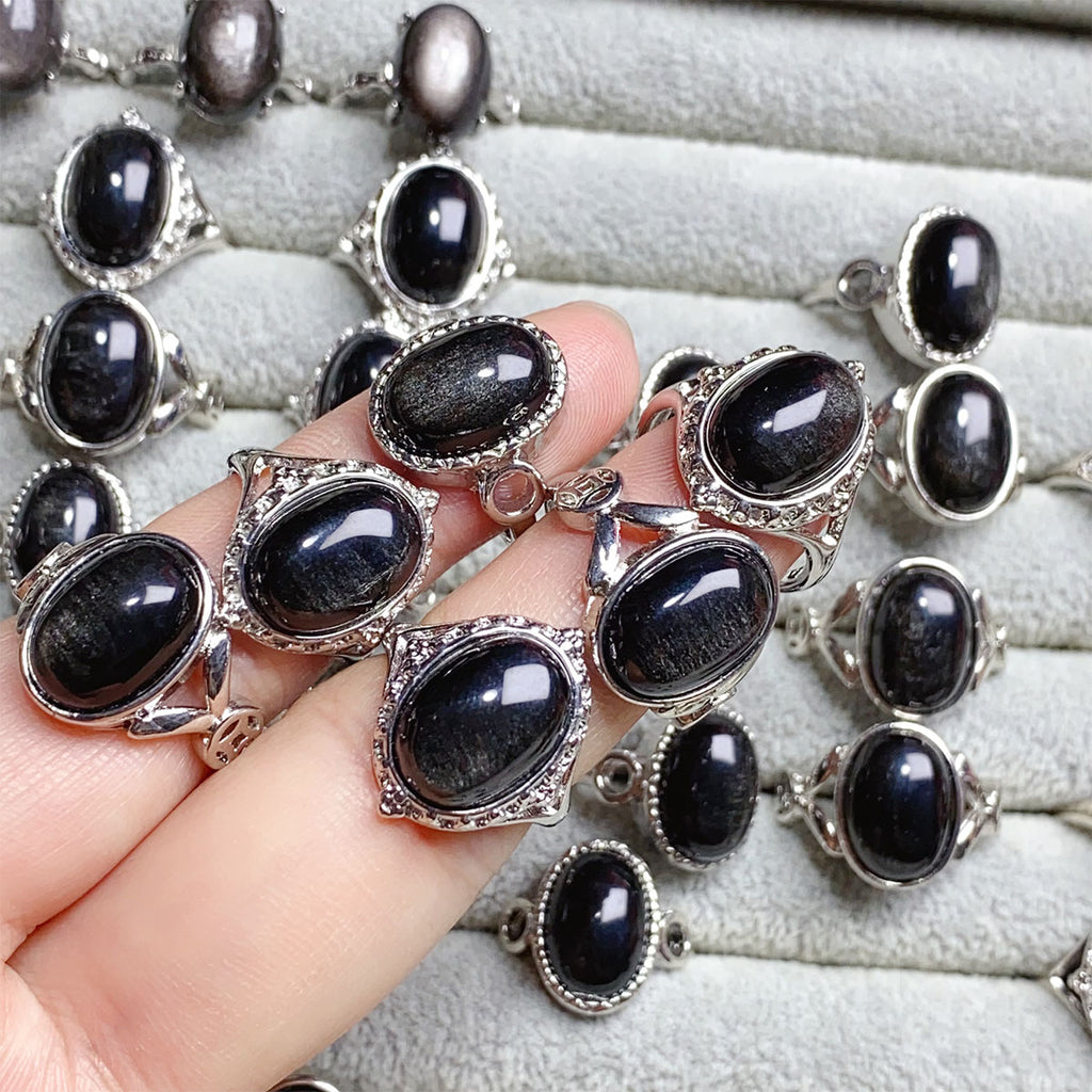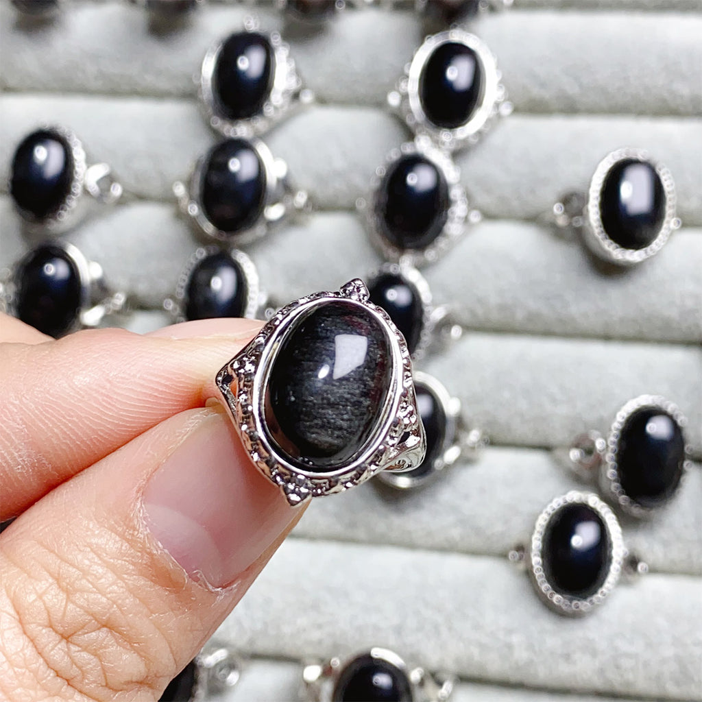Silver Obsidian Crystal Adjustable Rings $10/4PCS