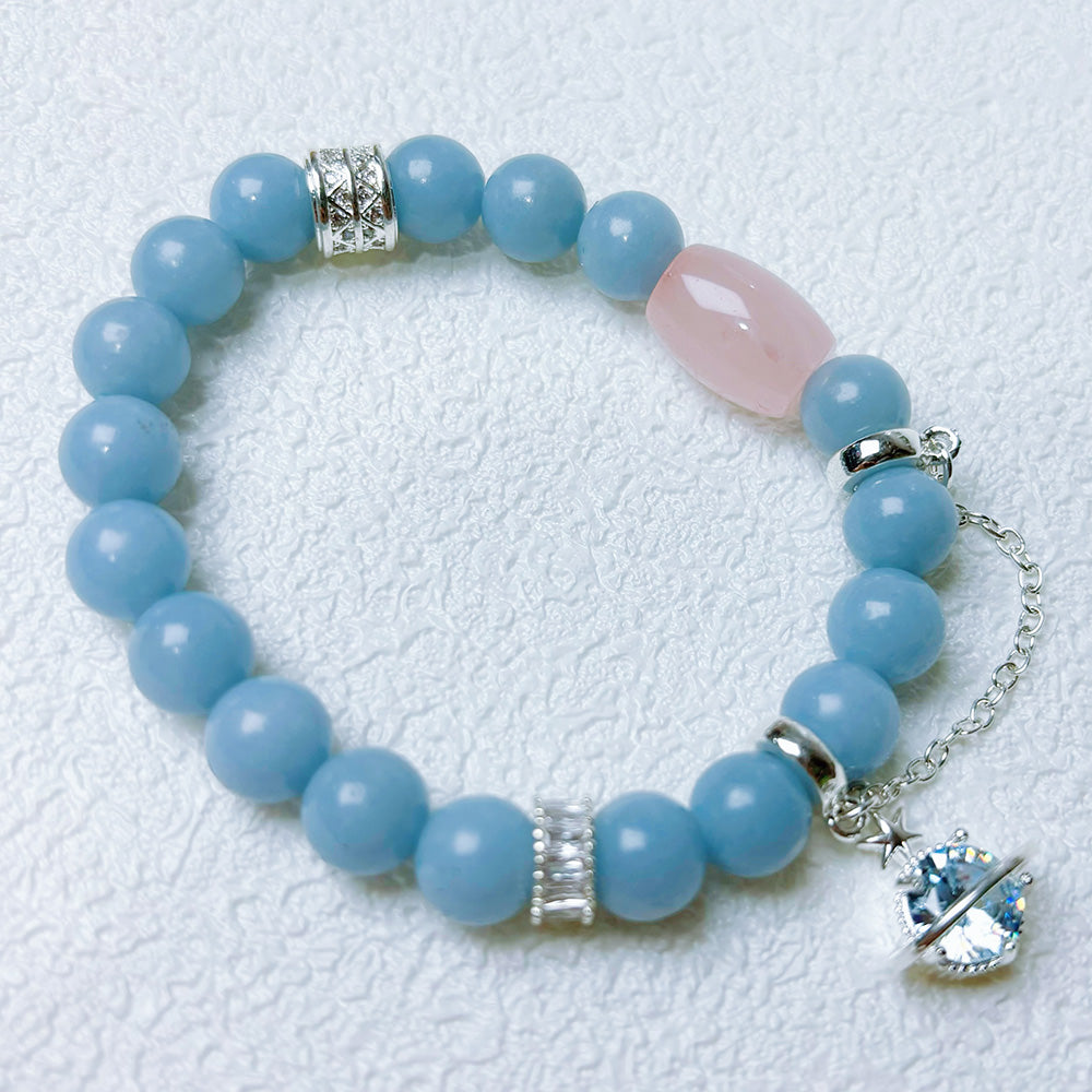 8mm Angelite Stone Bracelet Hand Designed Crystal Jewelry