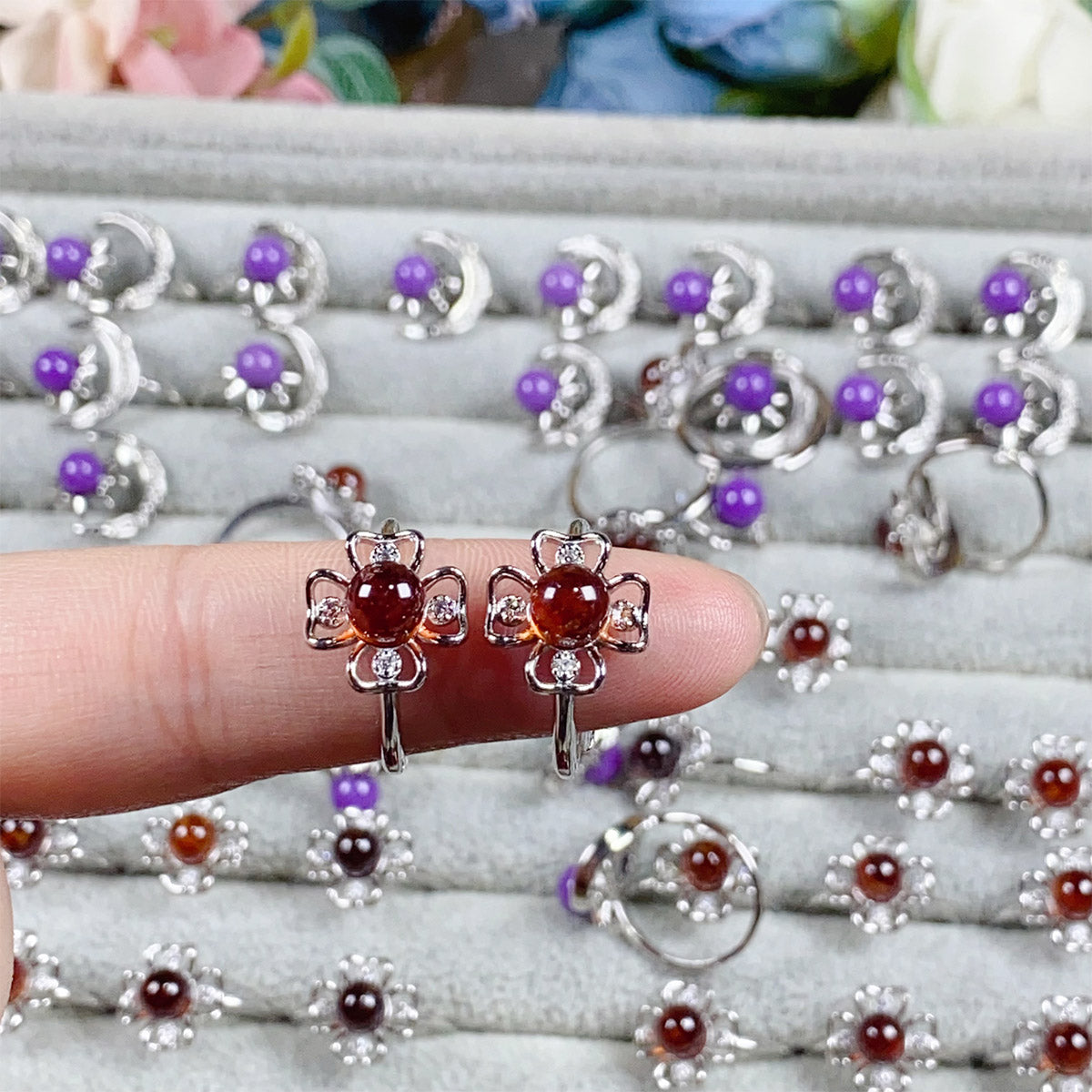 Lepidolite Amber Crystal Adjustable Rings $10/3PCS