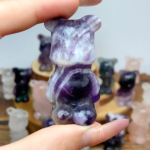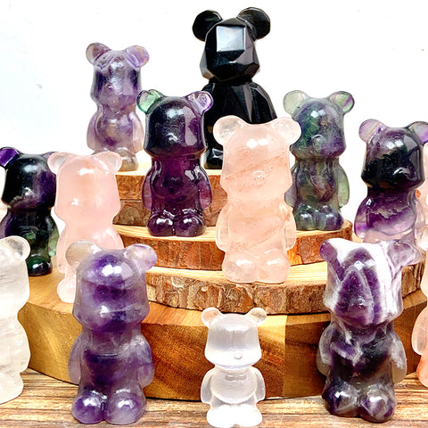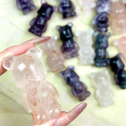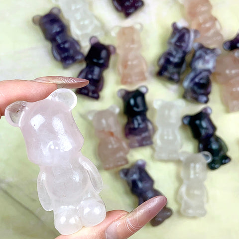 Cute Gloomy Bear Carvings Fluorite Rose Clear Quartz Crystal Decorative Gift