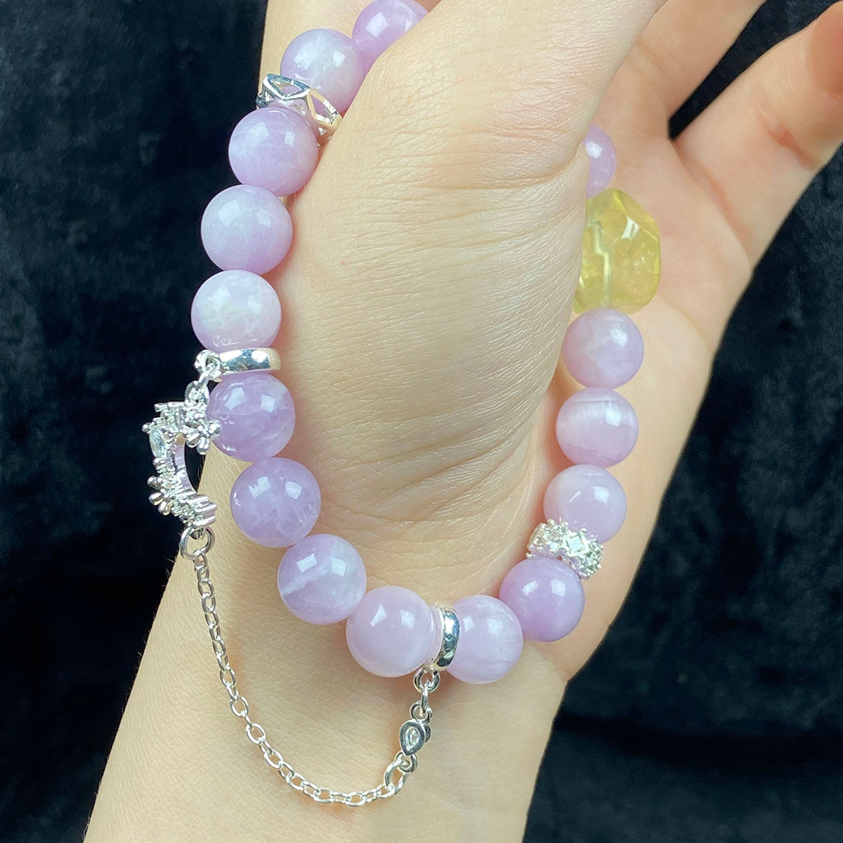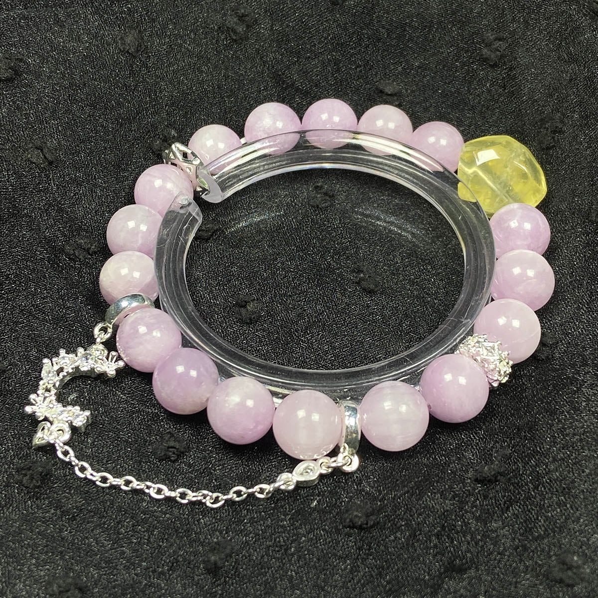 Irregular Citrine 9mm Kunzite Round Bbeads Bracelet Crystal Healing Gemstone Women Jewelry