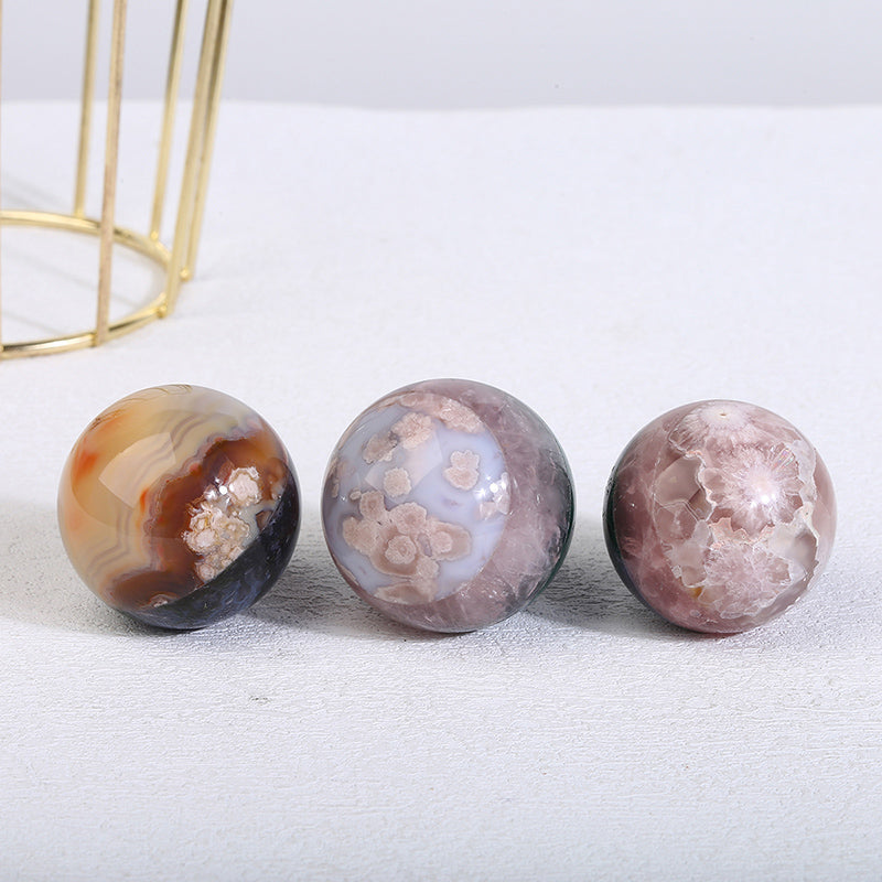 Rose Quartz With Flower Agate With Moss Agate Sphere