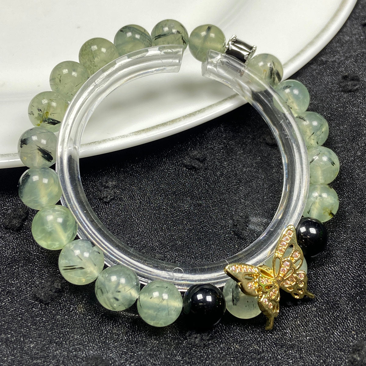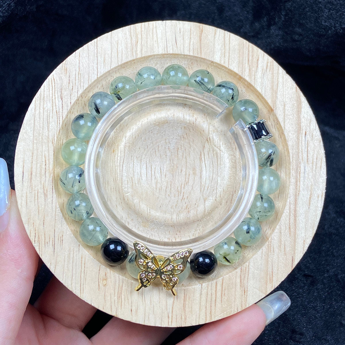 8mm Prehnite Beads Butterfly Accessory Bracelet Women Elegant Round Green Grape Jewelry