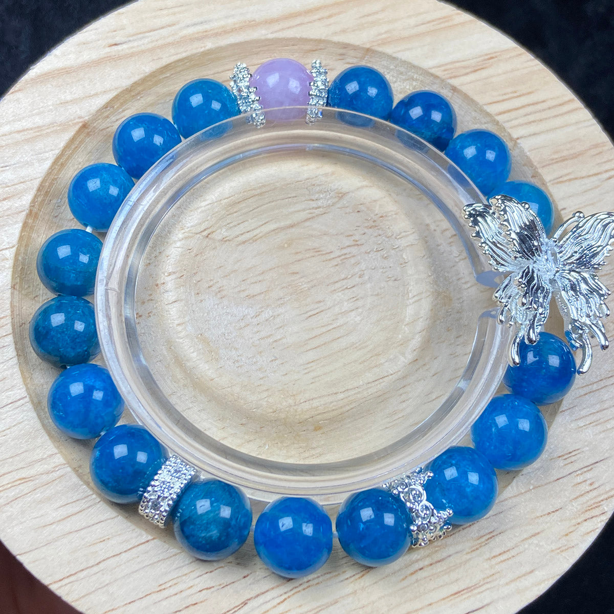 New Fashion Blue Apatite Bead 8MM Kunzite Bracelet Stainless Steel Butterfly Accessory Jewelry