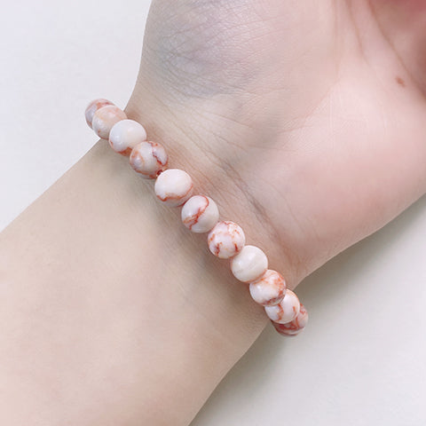A beautiful white and red vein jasper bracelet. When worn, the Red Vein Jasper bracelet promotes courage and wisdom and perfectly compliments any outfit.