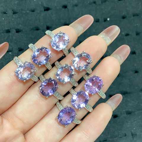 Amethyst Adjustable Size Alloy & S925 Rings