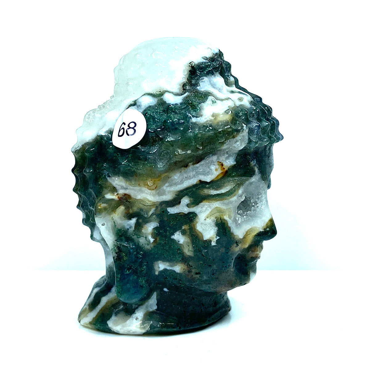 Crystal Moss Agate Buddha Head