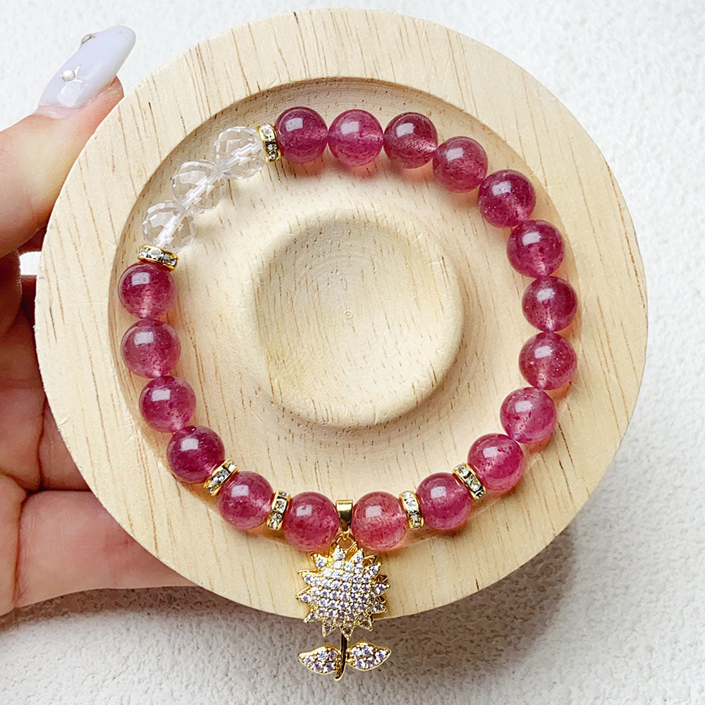 8mm Strawberry Quartz Crystal Beaded Bracelet Girls Party Wedding Jewelry Gifts
