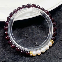 6mm Dark Red Garnet White Pearl Crystal Bracelet
