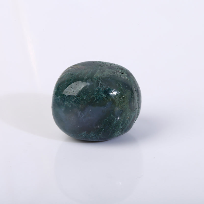 Moss Agate has green colored minerals throughout which look like moss. It also has brown or black shades in the patterns. Moss Agate has a meaning that is about uplifting and soothing.