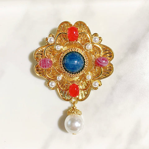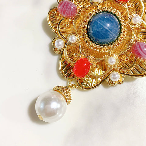 Baroque Pearl Hollow Colored Stone Alloy Brooch 17