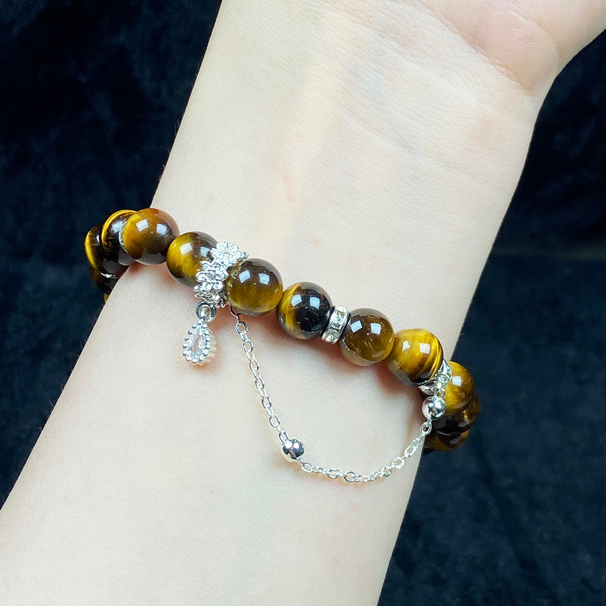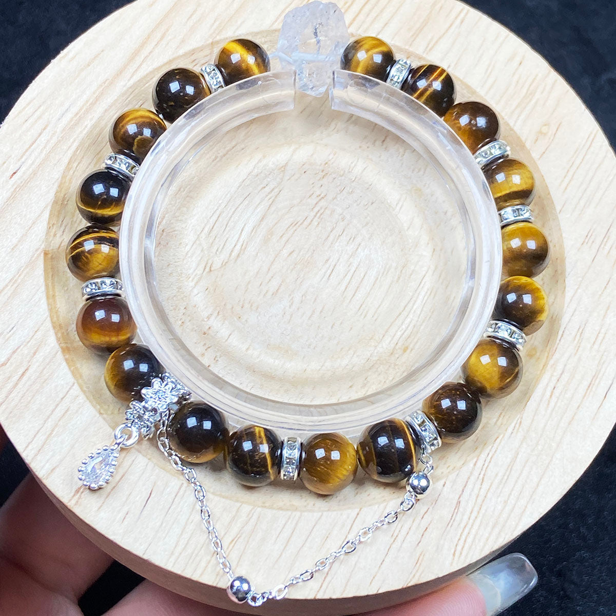 8mm Yellow Tiger Eye Stone Bracelet Handmade Fine Bangles Healing Reiki Yoga Jewelry