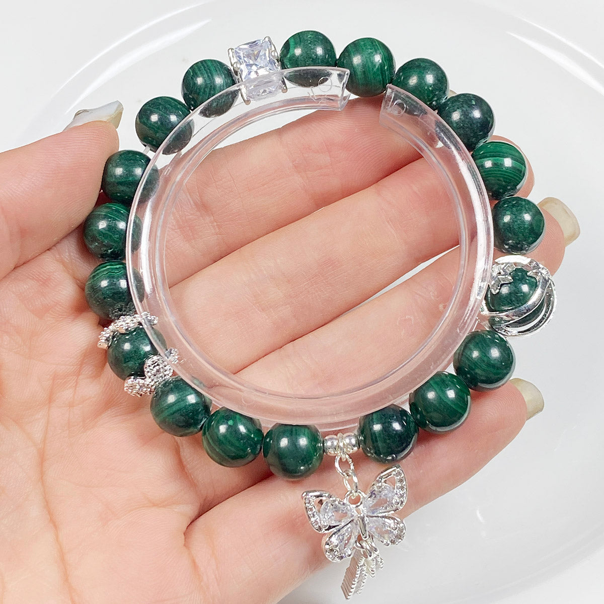 Crystal 9mm Malachite Stone Zircon Butterfly Chain Bracelet – komocrystal