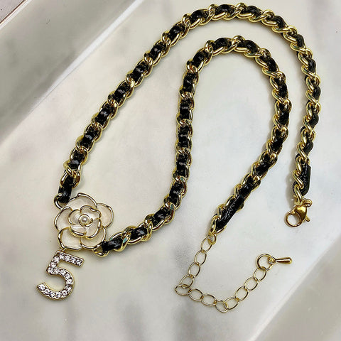 Stainless Steel Zircon 5 Camellia Pendant Necklace NC0050