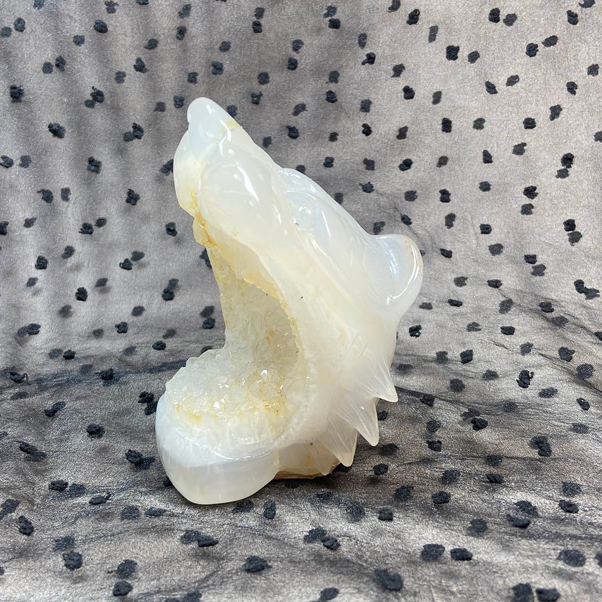 Druzy Agate Geode Wolf Statue Crystal Healing Handmade Carved Home Decoration Ornament