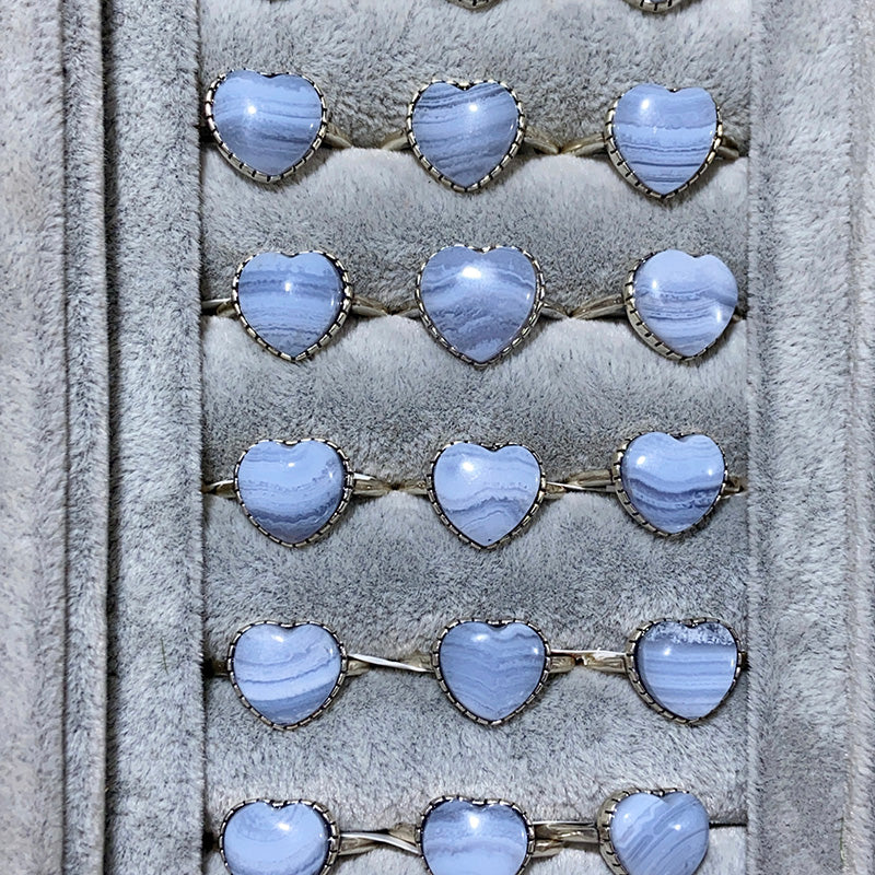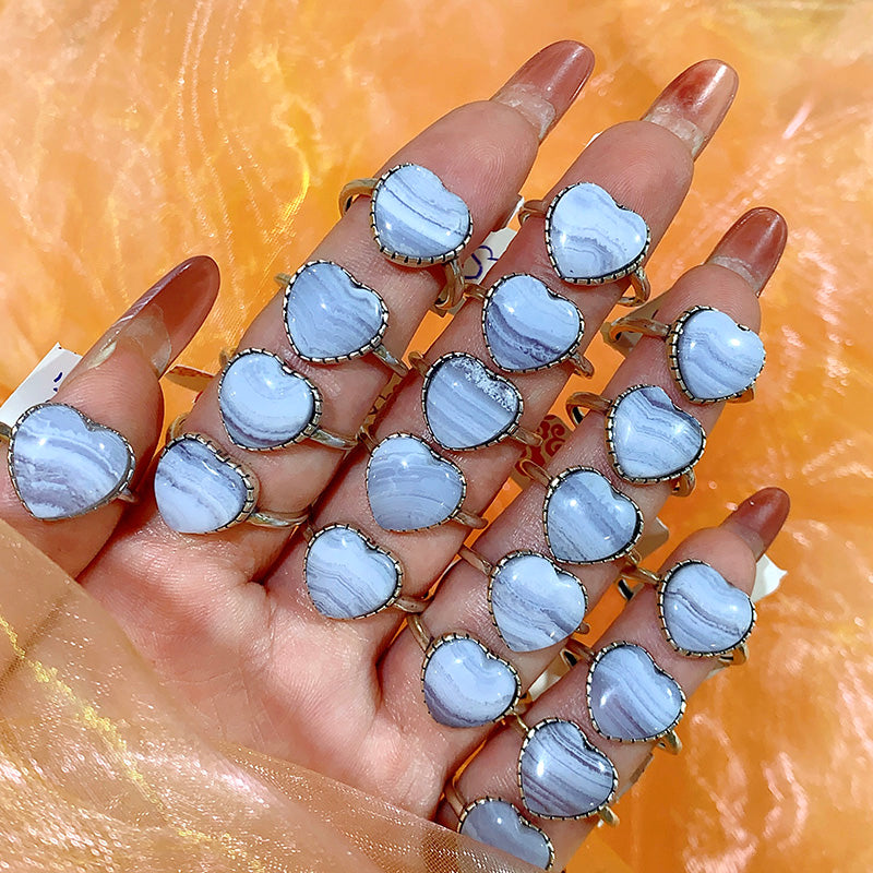 S925 blue lace agate heart shape ring