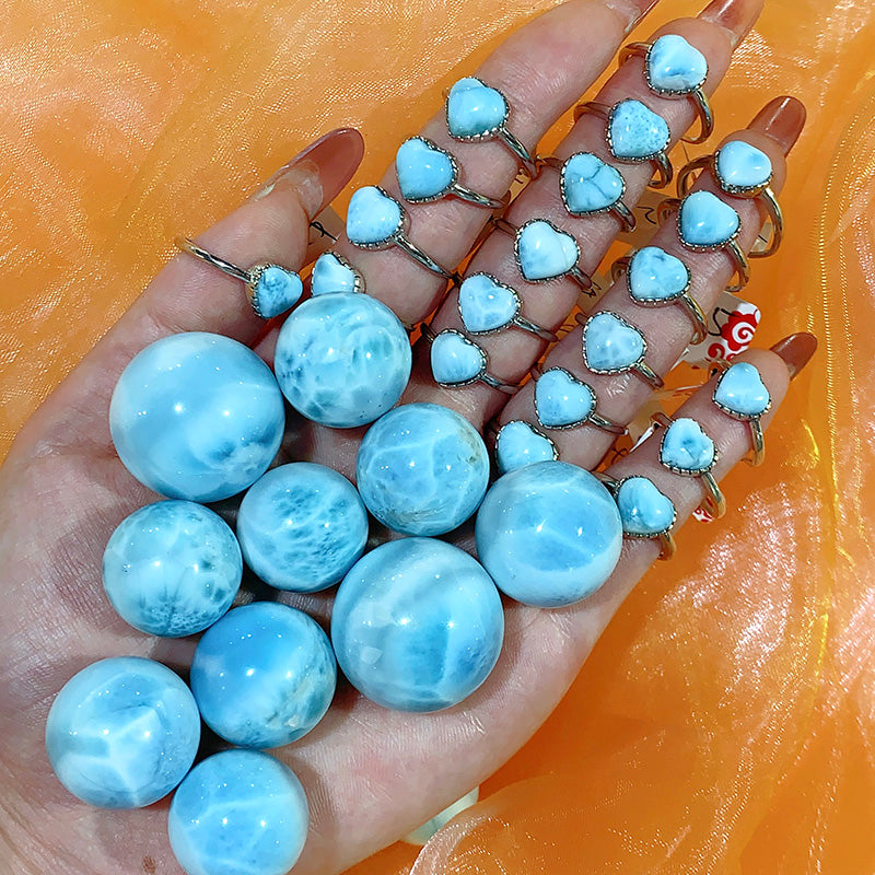 S925 larimar heart shape ring
