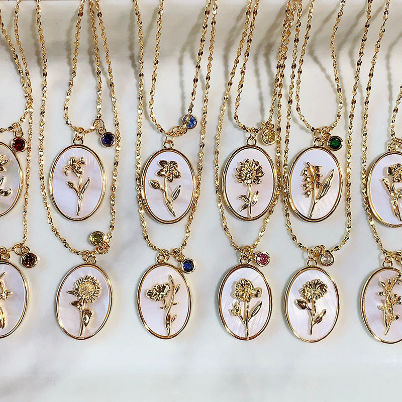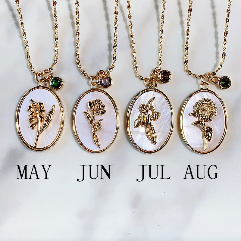 Stainless Steel 12 Month Flower Pendant Shell Necklace NA0066