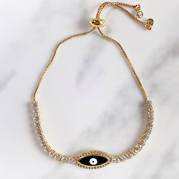 Stainless Steel Evil Eyes Zircon Adjustable Bracelet BA0004