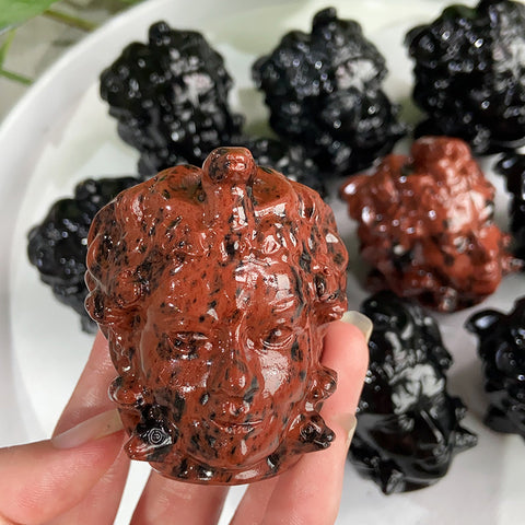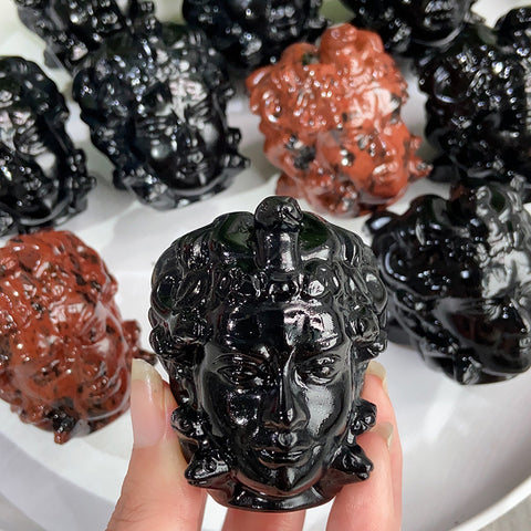 Mahogany Obsidian & Obsidian Medusa Carvings