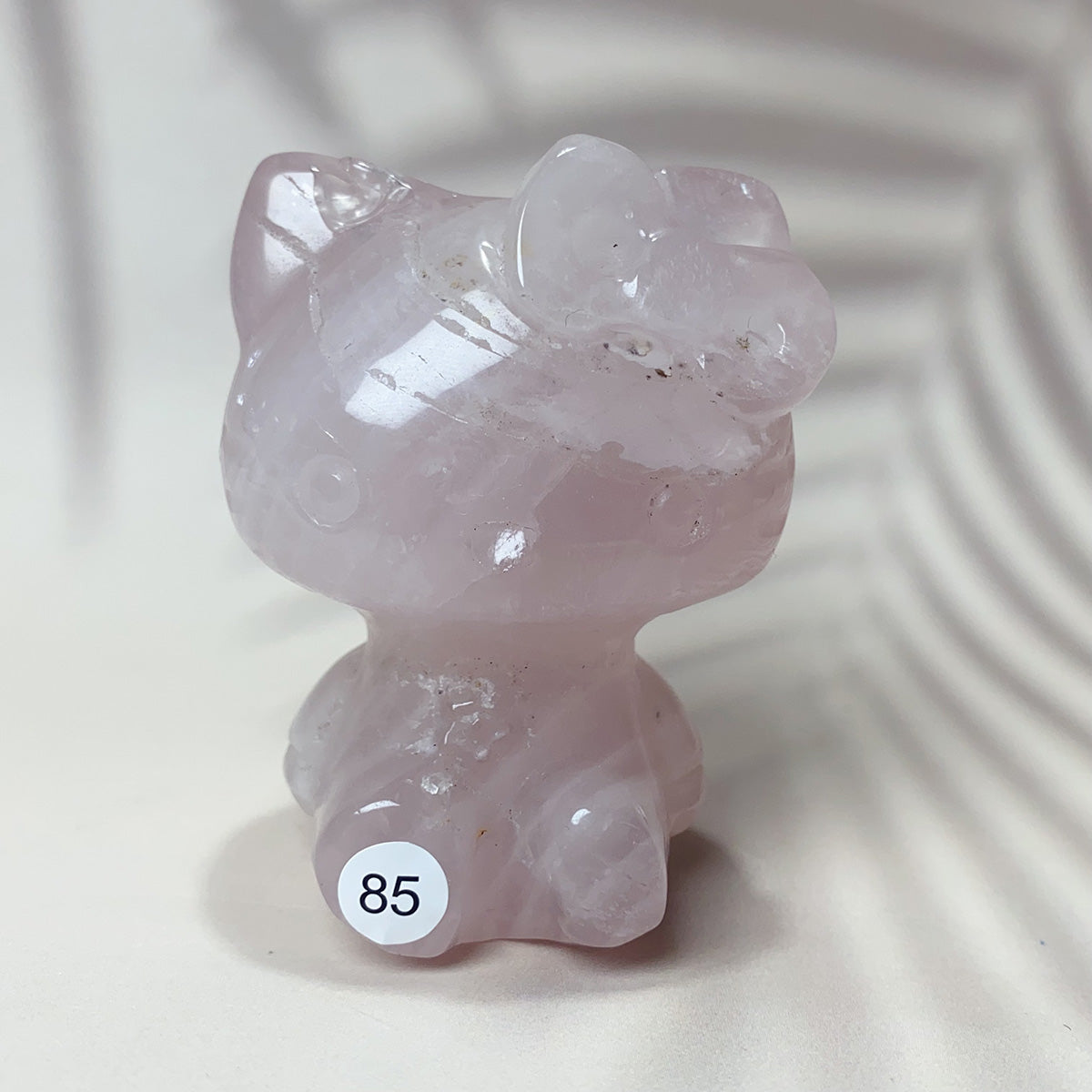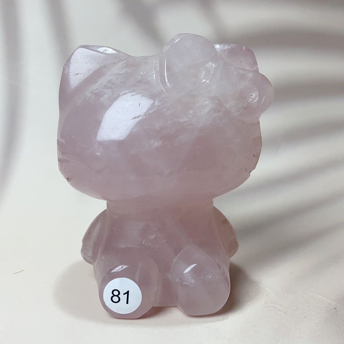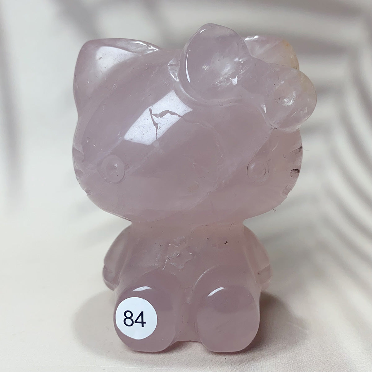Natural Clear Quartz & Rose Quartz Crystal Carving Hello Kitty