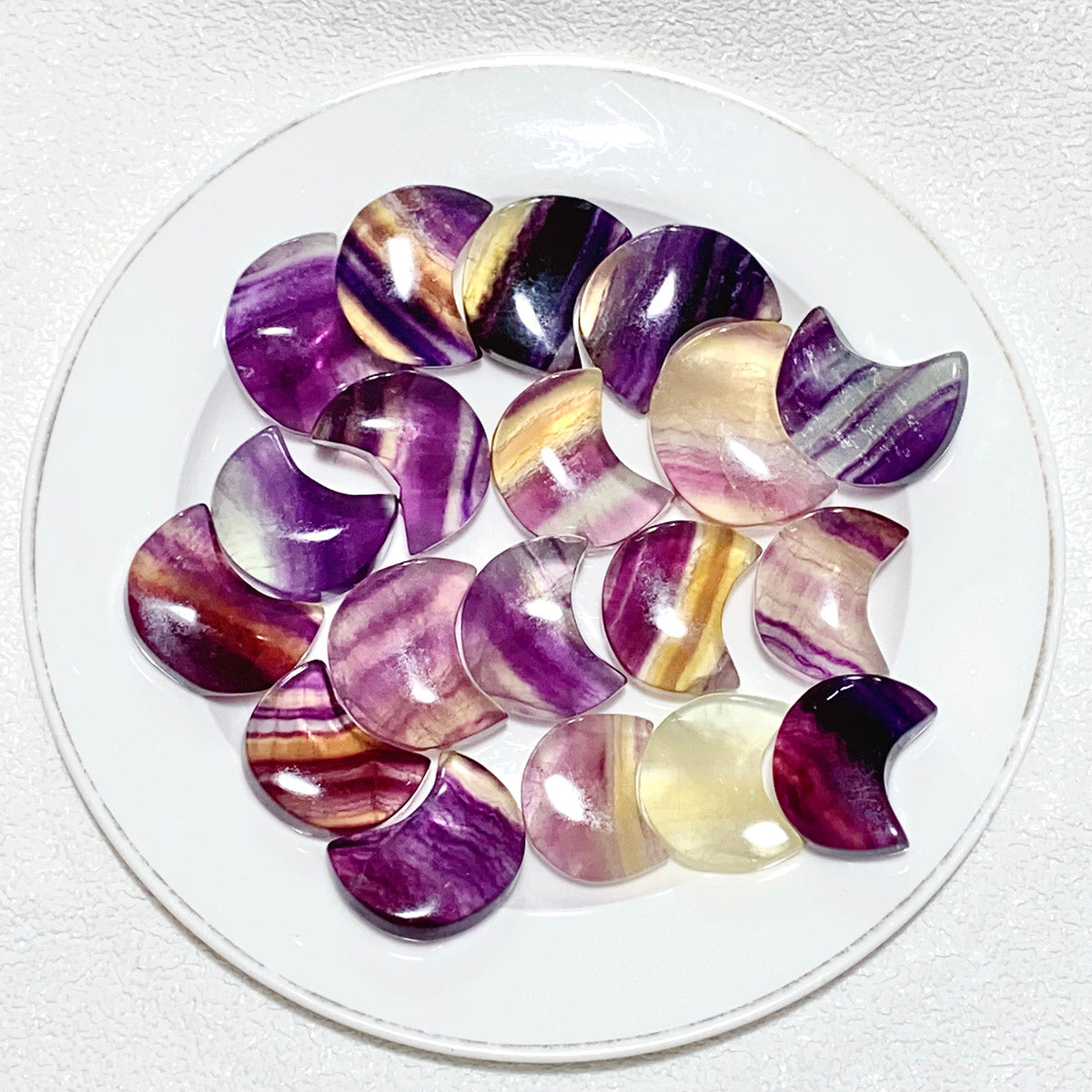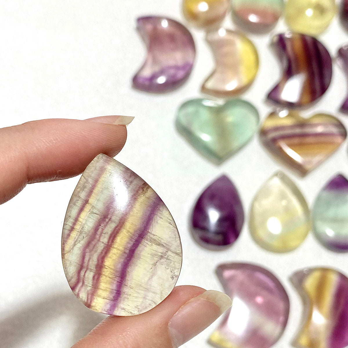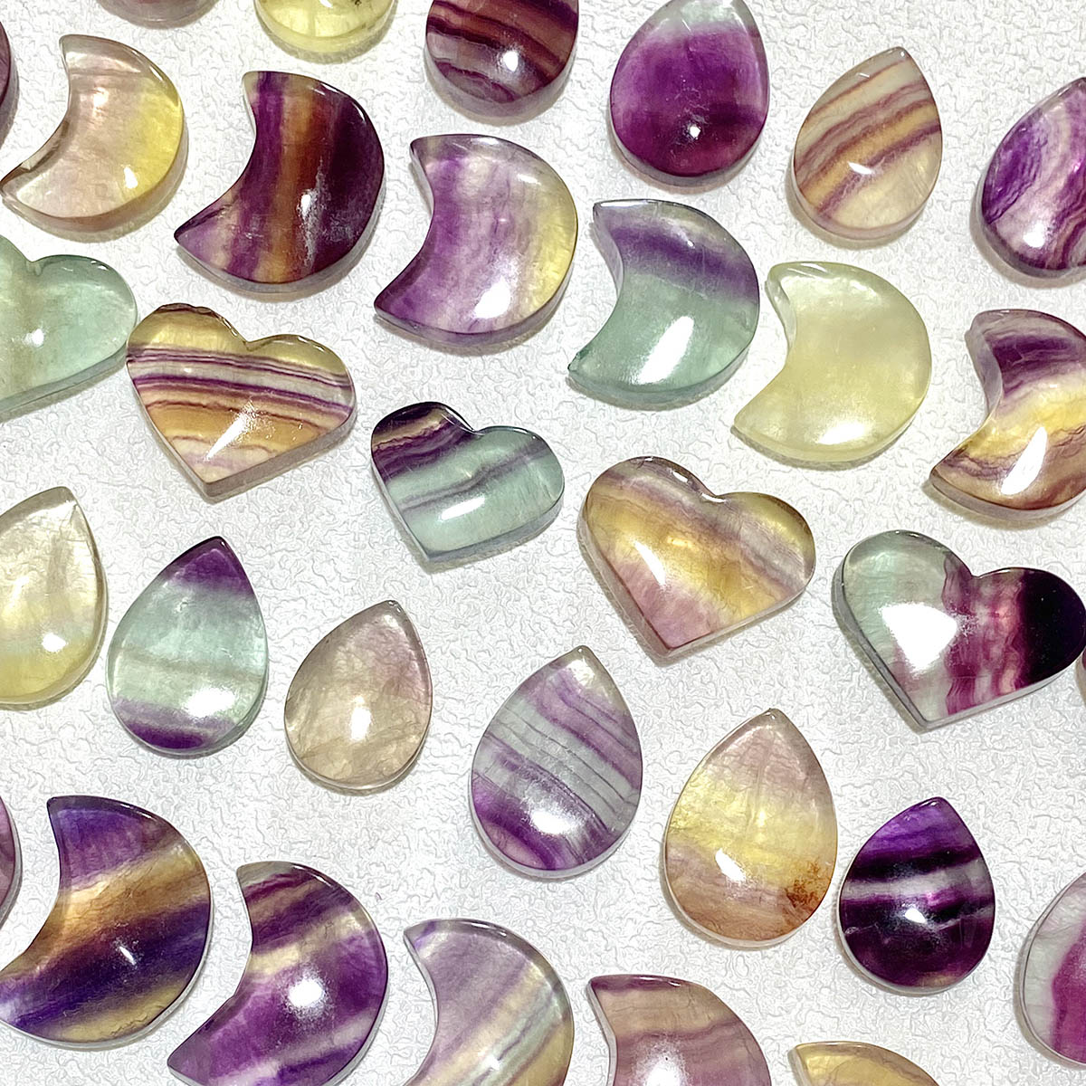Natural Rainbow Fluorite Crystal Moon & Heart & Water Drop