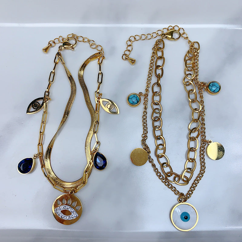 Stainless Steel Evil Eyes Zircon Double Bracelet BC0052
