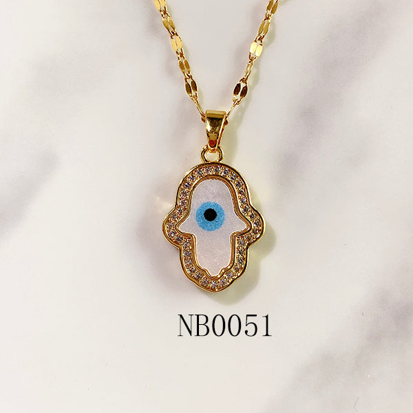 Stainless Steel Evil Eyes Zircon Pendant Shell Necklace NB0050-51