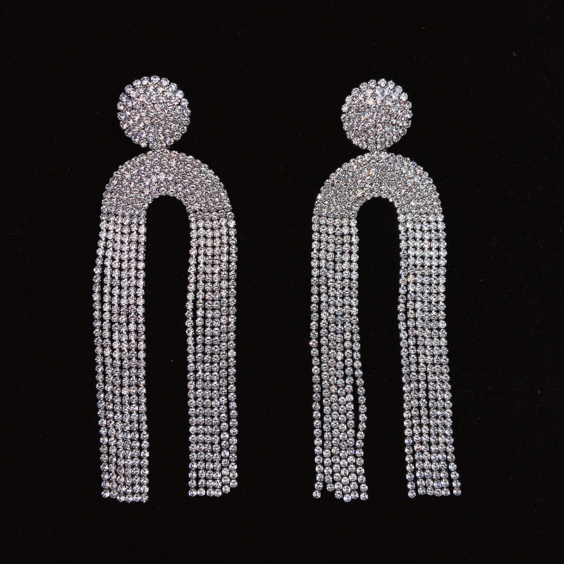 925 Silver-Pin Zircon Long Tassel Earrings ED0002
