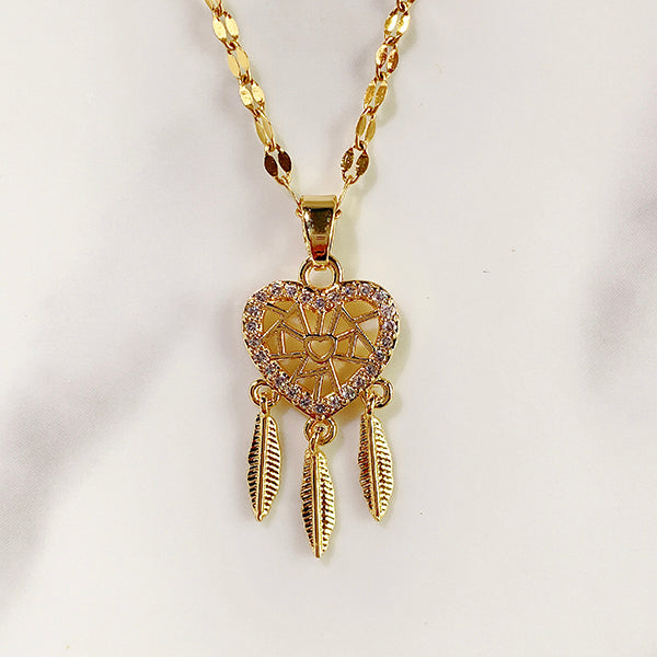 Stainless Steel Dreamcatcher Pendant Zircon Necklace NB0053