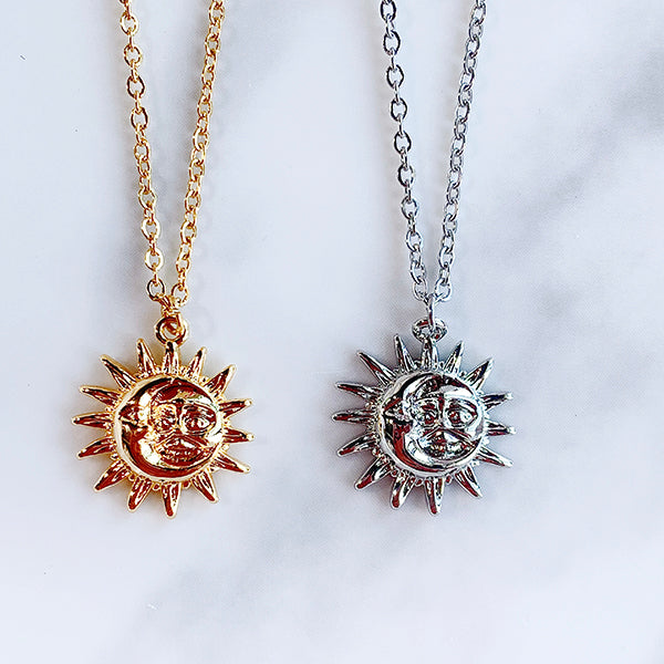 Stainless Steel Sun Moon Face Pendant Necklace NB0005