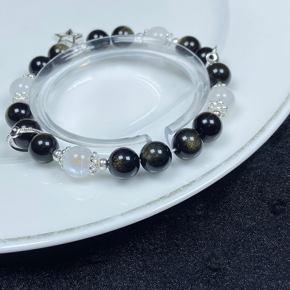 8mm Golden Obsidian Bead Moonstone Bracelet Elastic Reiki Jewelry Polished Fashion Bangle