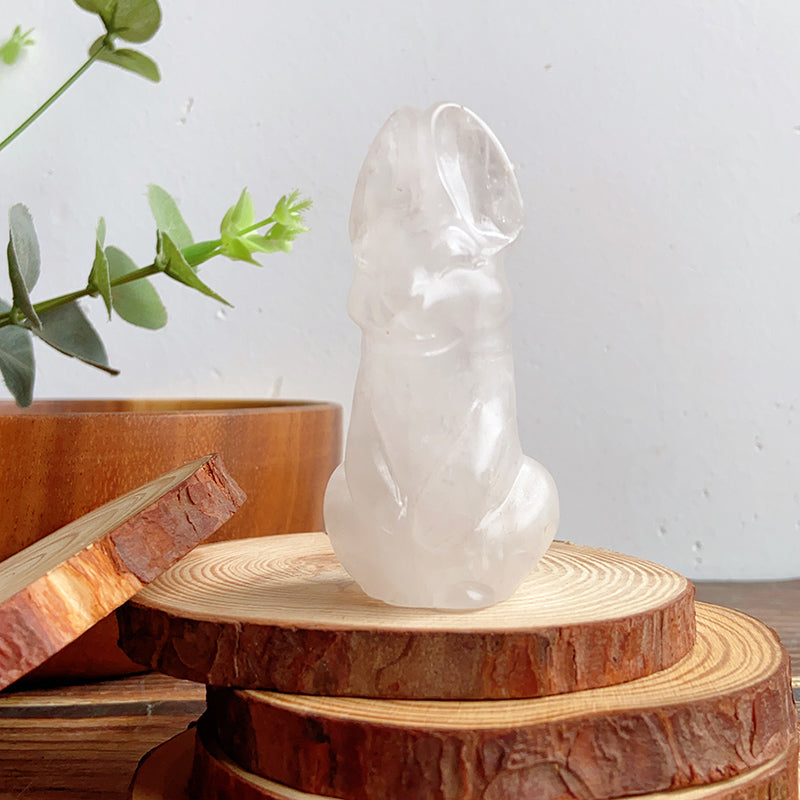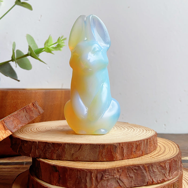 Cute Bunny/Rabbit Carvings (clear quartz & opalite & obsidian & larvikite)