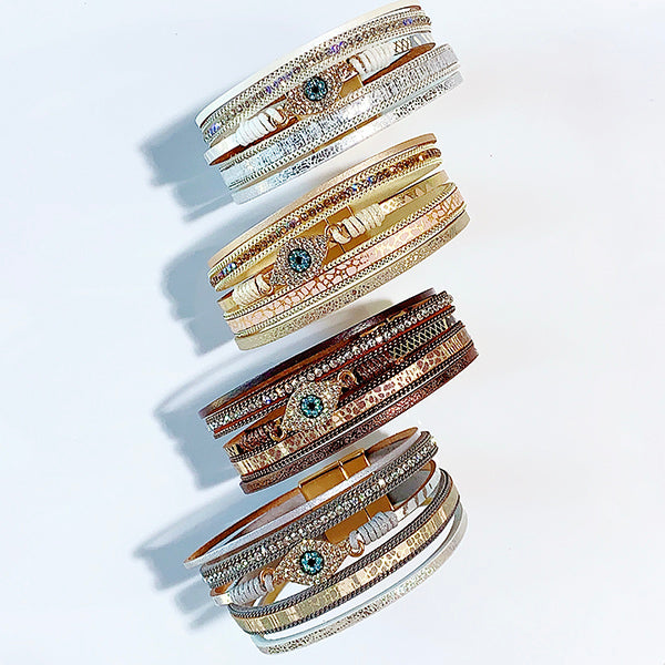 Leather Evil Eyes Zircon Magnet Bracelet BC0048