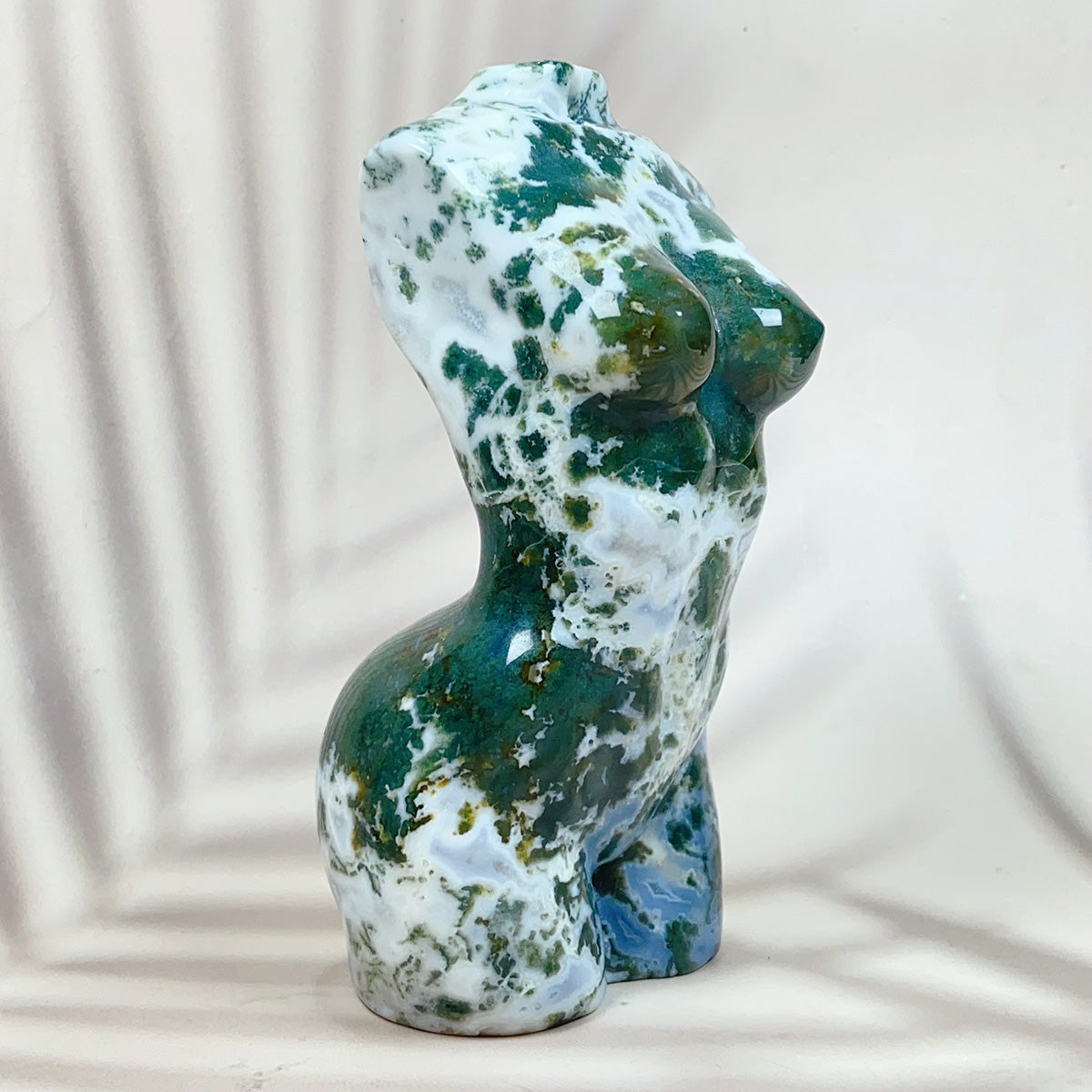 Rose Quartz Moss Agate Lady Body Carving Reiki Crystal Healing Energy Art Stone Home Decoration