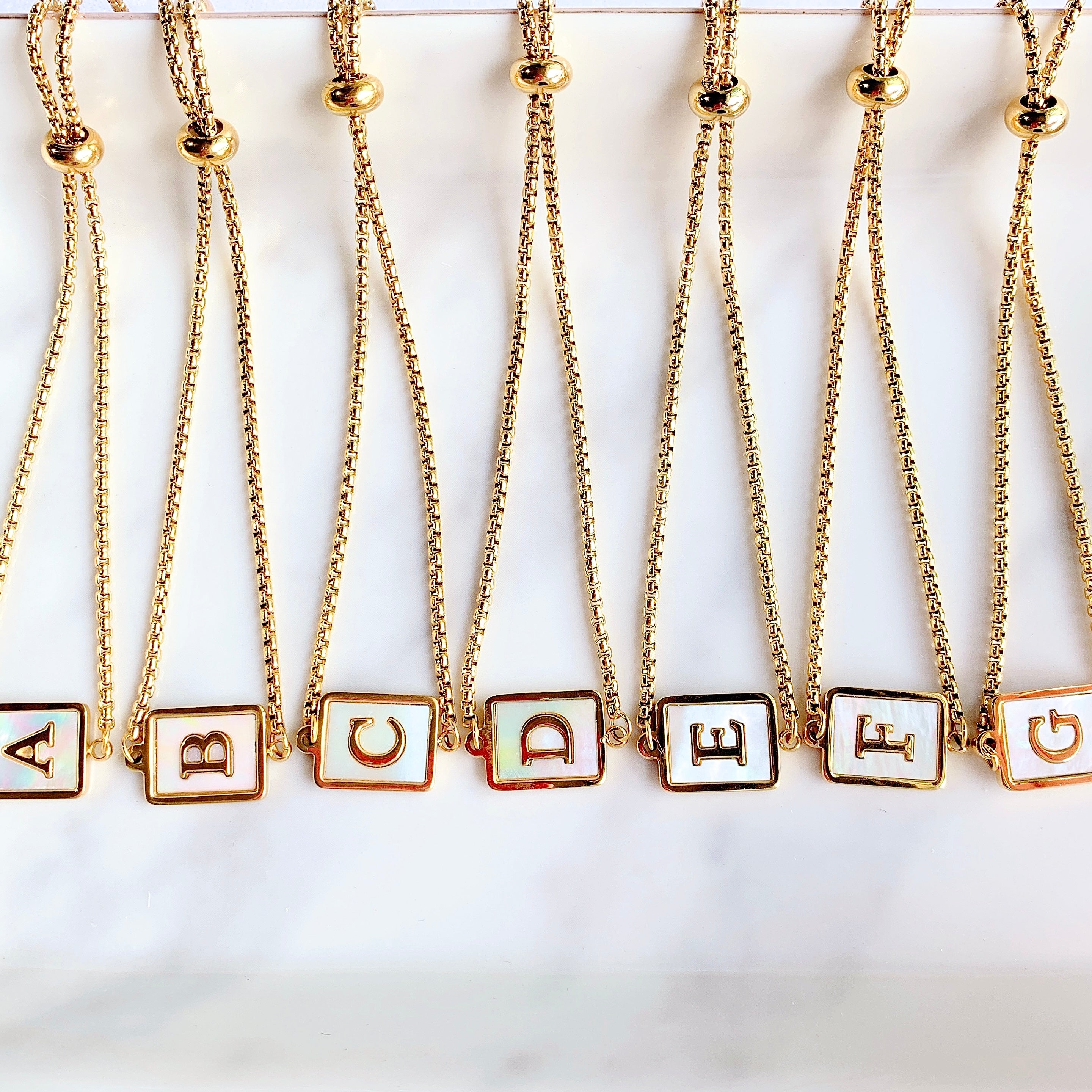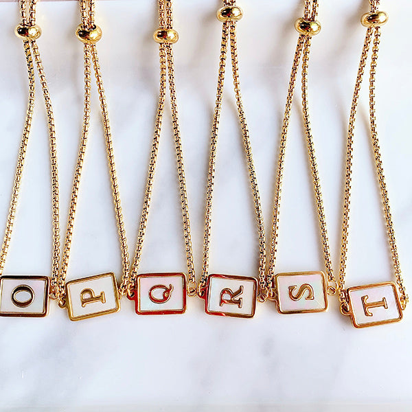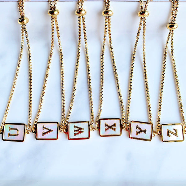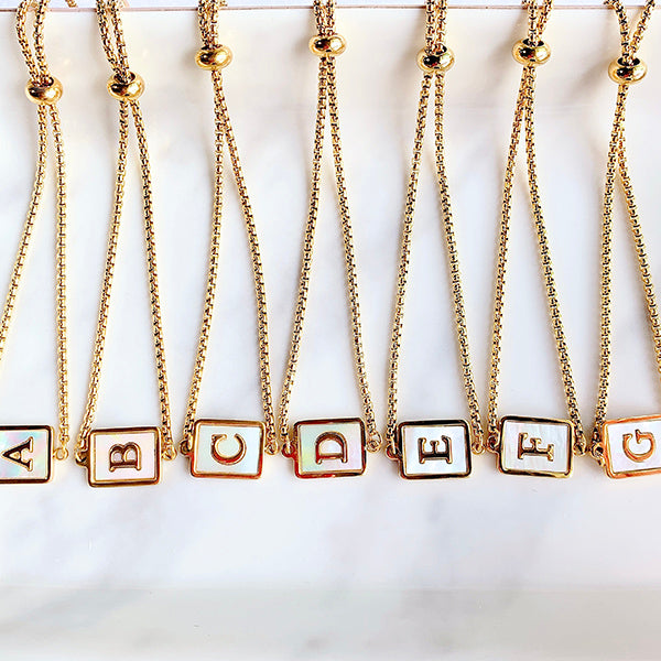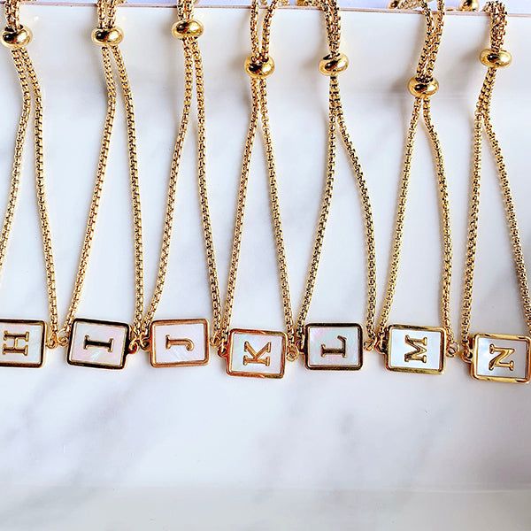 Stainless Steel Evil Eyes 26 Letters Shell Adjustable Bracelet BD0011