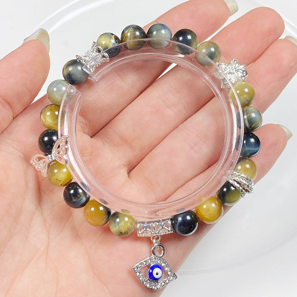 8mm Dream Tiger Eye Stone Beaded Evil Eye Pendant Bracelet Crystal Healing Stone Women Men Jewelry