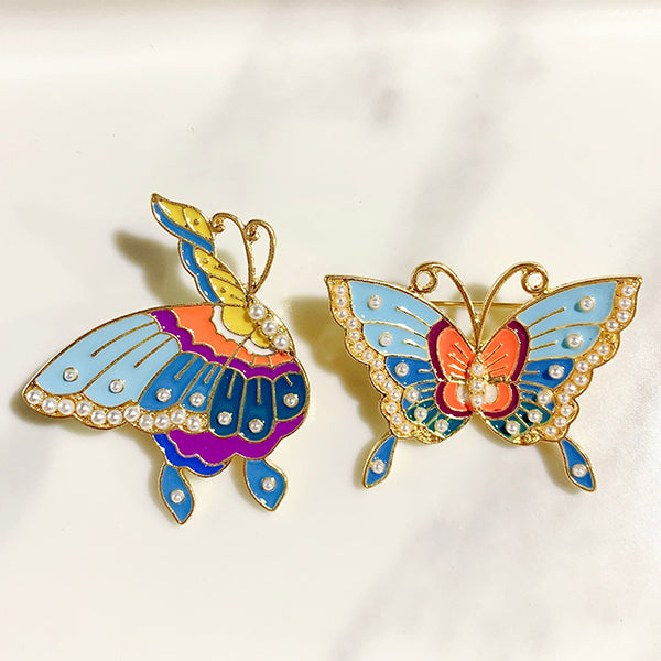 Butterfly Enamel Imitation Pearl Alloy Brooch 11-12