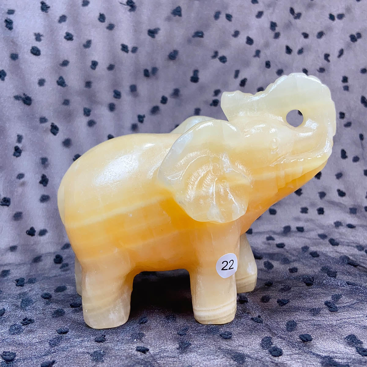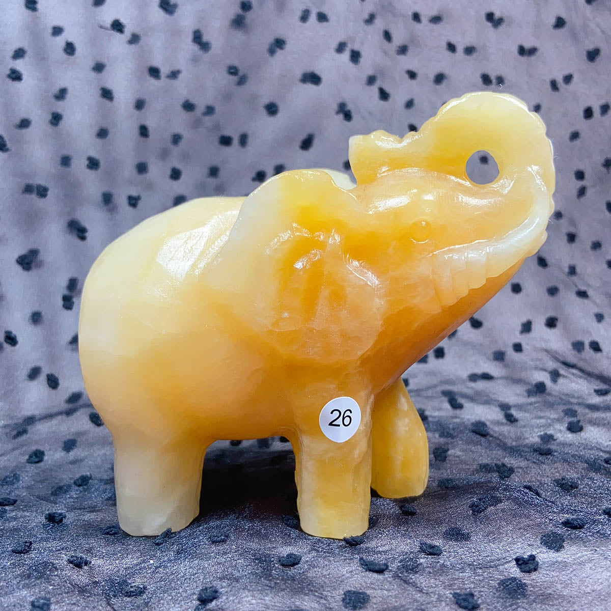 Orange Calcite Elephant Animal Crystal Carved Healing Quartz Gemstone Crafts Home Decoration