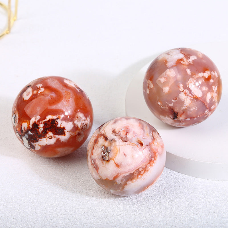 Beautiful Red Flower Agate Sphere