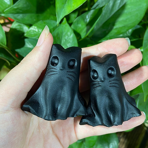 Black Obsidian Cat Carvings Crystal Cartoon Carvings Decorative Gift