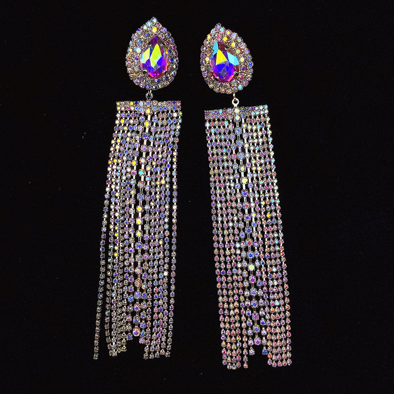 925 Silver-Pin Zircon Long Tassel Earrings ED0003