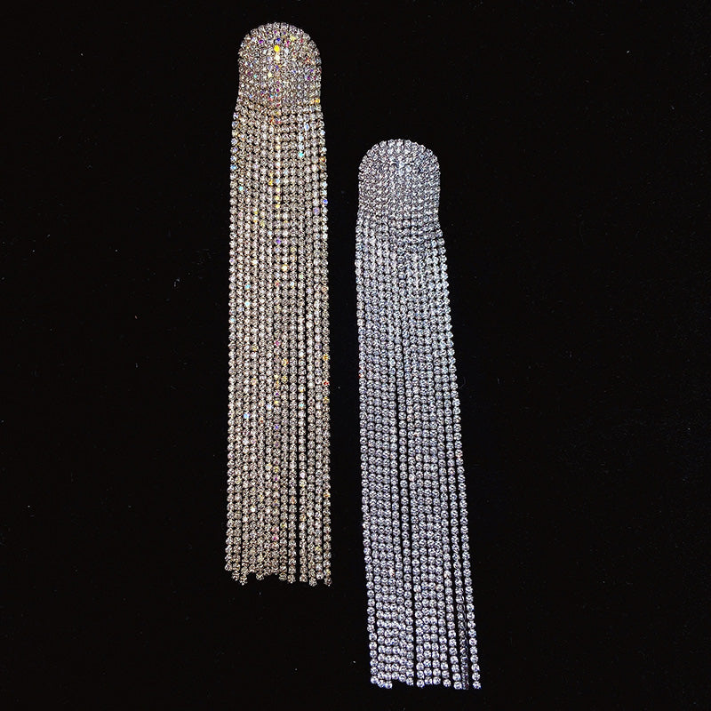 925 Silver-Pin Zircon Long Tassel Earrings ED0004