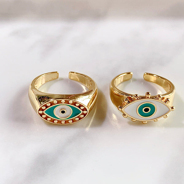 Stainless Steel Evil Eyes Enamel Can Adjust Ring RC0004