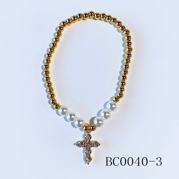 Stainless Steel Virgin Mary Cross imitation pearl Zircon Bracelet BC0040
